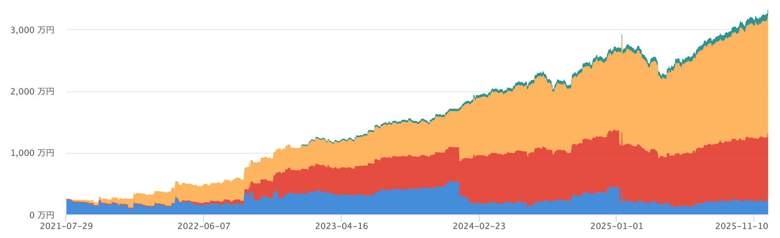 マネーフォワードで資産管理を始めた2021年7月29日から4年3ヶ月と少しでついに3000万円分の資産形成をすることができました。