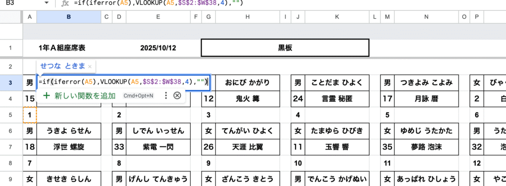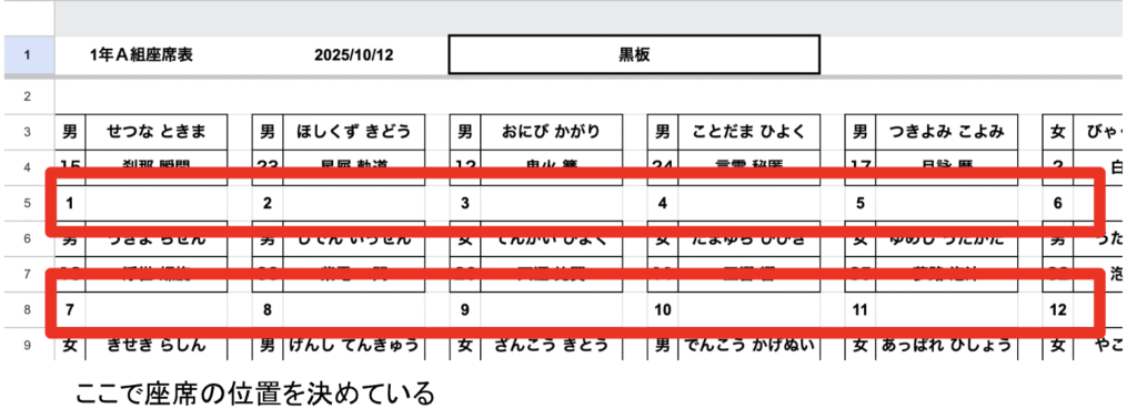 座席の中身は基本、以前の座席表スプレッドシートの記事と同じです。