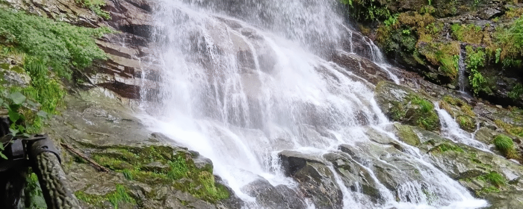 こちらの画像が土釜の滝です。こちらの土釜の滝は自転車で見にいくのにうってつけです。というのも、近くに駐車スペースがなさそうだったためです。自転車なら道の脇にちょっと駐輪してここまで滝に近づいて見ることができました。
