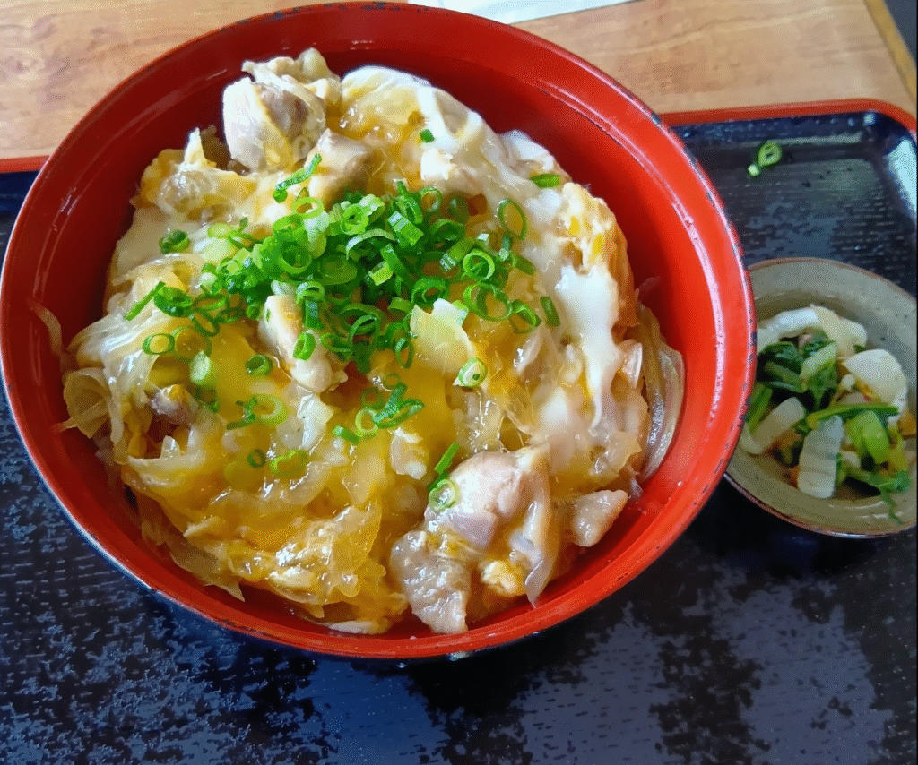 半田そうめんでは足りなかったため、川向こうのふじよしというお店で親子丼をいただきました。